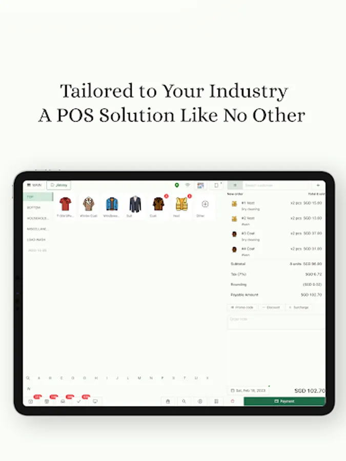 EasyBiz Cloud POS is a comprehensive mobile application designed to help laundry, bag service, and alteration stores easily manage their both in store & online sales and streamline their operations. Our mobile POS app is linked with our online website product, so customers can directly manage their online sales using their POS.