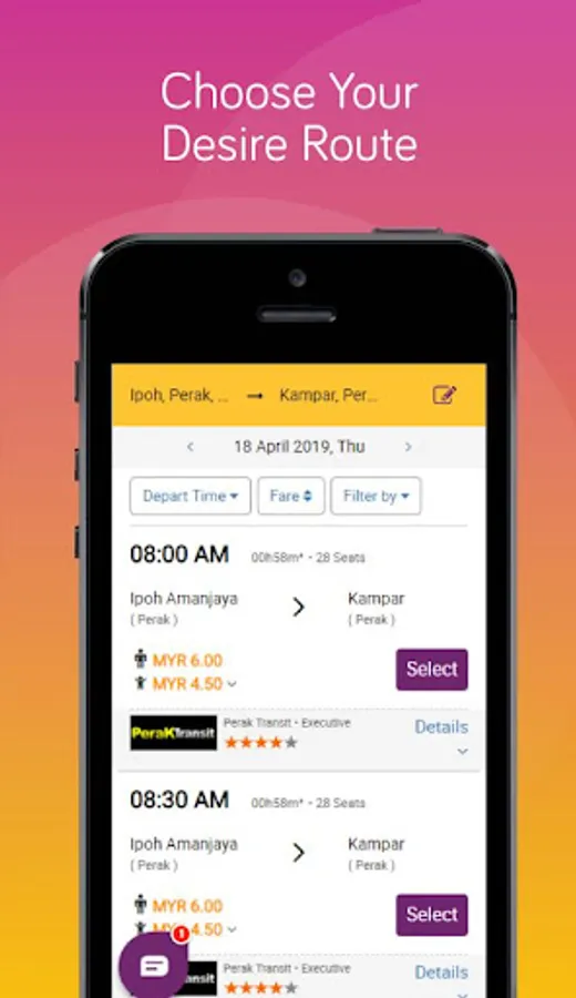 Online booking for Perak Transit bus tickets is now available with a range of bus schedules provided for a convenient journey in Perak. Download our app and book Perak Transit bus tickets today with just a few taps to enjoy affordable fares for your next Perak trip or contact +605 255 1128 for more enquiries.