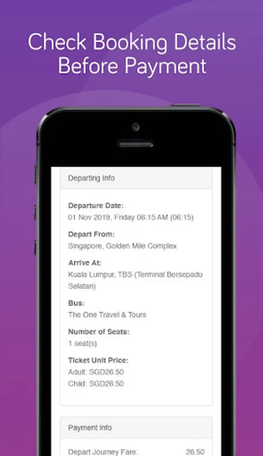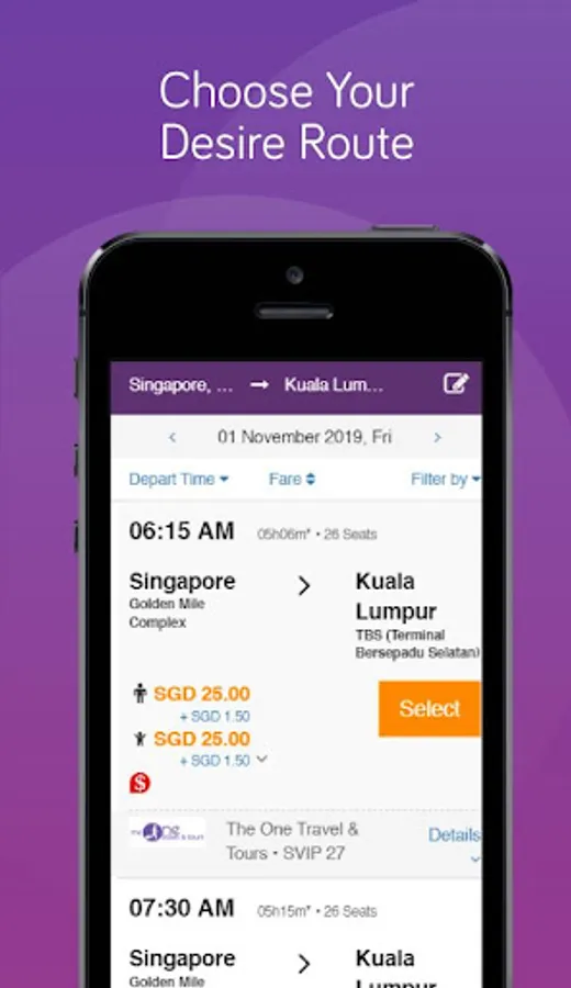 The One Travel & Tours Bus Ticket app is an easy-to-use app to book your express bus tickets to popular destinations across Malaysia and Singapore, including Kuala Lumpur and Malacca.
