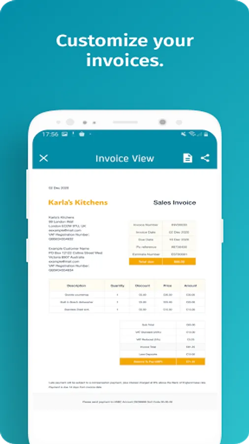 Quickly and easily create & send professional invoices, estimates, quotes, receipts and statements to clients. Send them on the go on your phone from the customers office, or from home with the web app on your tablet or desktop.