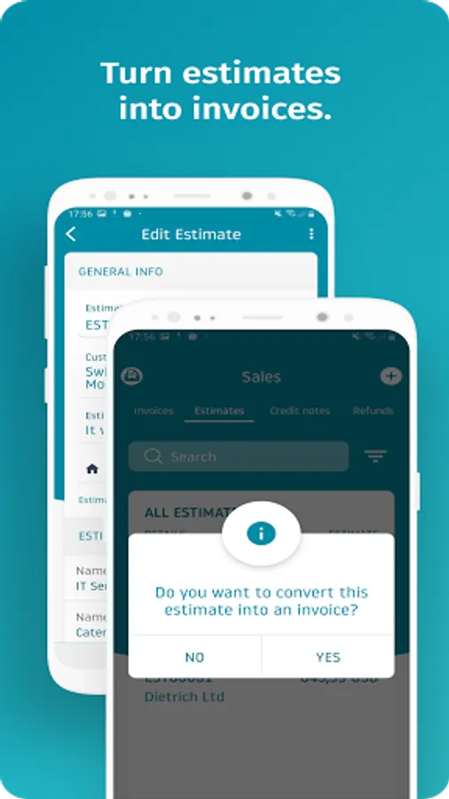 • Instantly turn estimates into invoices