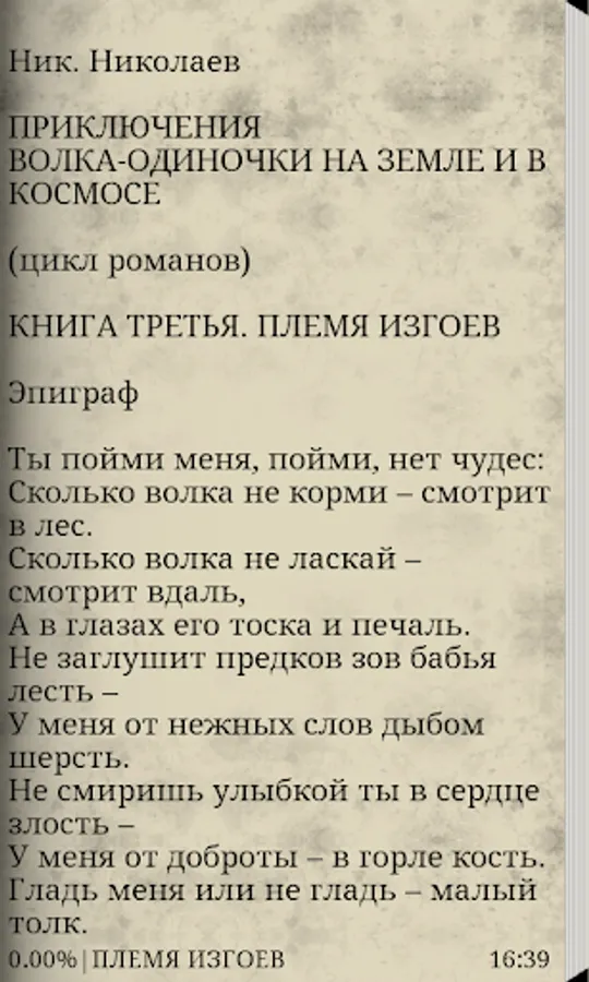 In the third book of Nick. Nikolaev TRIBE outcast from the cycle of novels Adventures of a lone wolf on the ground and in space, describes the events of the last two years of his presidency lone wolf, about the departure of free wolf pack in deep space on the ship-planetoid, on the flight to New Earth.