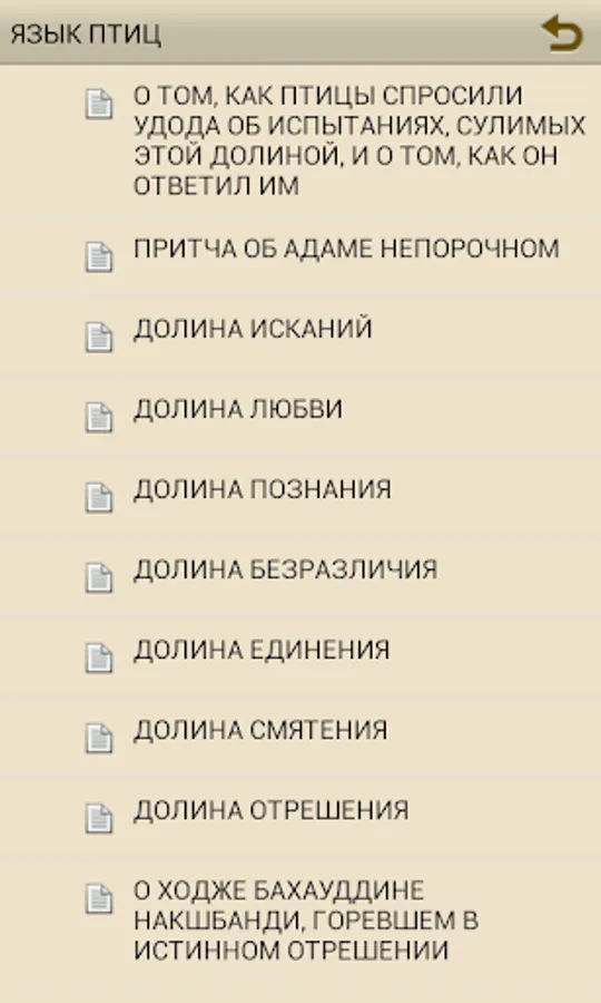 Hoopoe bird flies in a bird flock and talks about Simurg - infinitely perfect "ruler of the birds", which is both far and near. He is closer of his own soul, and separation from him means death, but to approach it without difficulty and suffering is impossible. Once Simurg dropped pen, flying over China. Since then, China has become the blessed edge. Along the way he tells the story of guriyah, bestowing bliss in paradise, and Hyzr, helps people in the world. Udod story motivates the birds in search of Simurgh. Among the interviewees Udod - Parrot from Hindustan, Peacock, Nightingale, Turtledove, partridge, pheasant, francolin, Falcon and Merlin. One of the few who has been tamed Simurg Iskander.