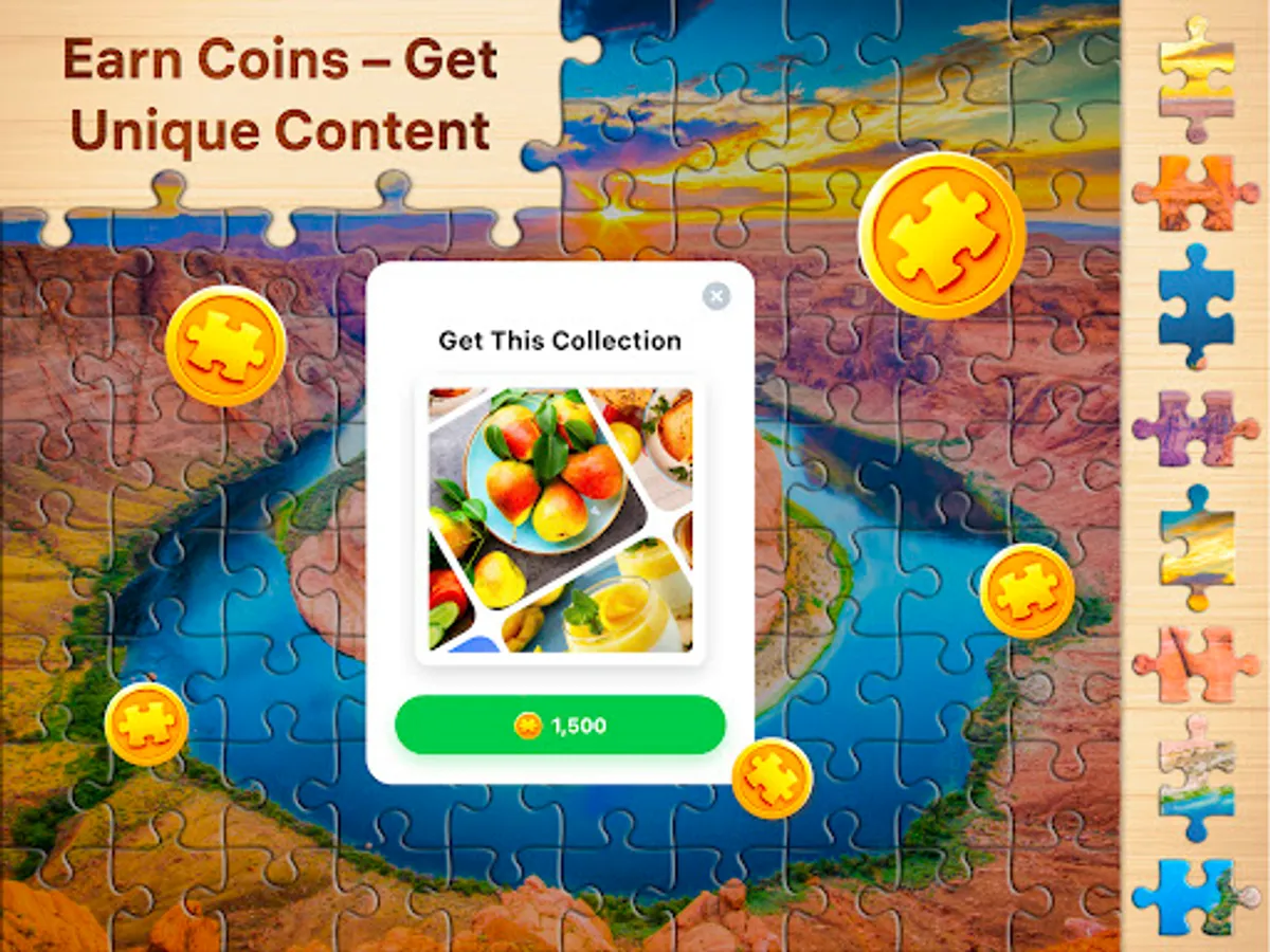 • Coins for exclusive content. Get coins by completing HD jigsaw puzzles. Spend them to get exclusive puzzles and collections!