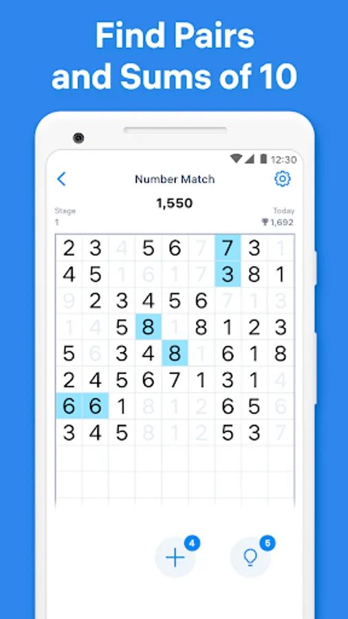 Try a mobile version of the pen and paper game from your childhood, known as Take Ten, Numberama or 10 Seeds. Now you can take your logic number game with you wherever you go. Solving free Number Match puzzles on mobile is much easier than using a pencil and paper.