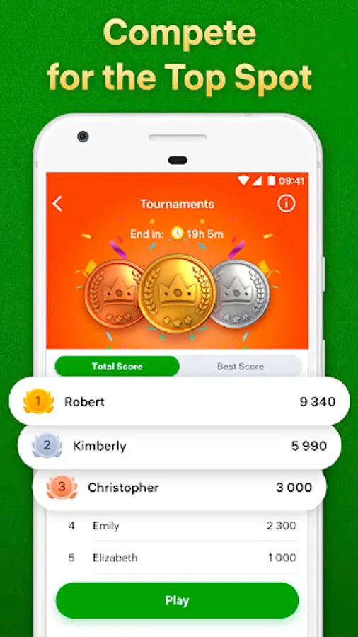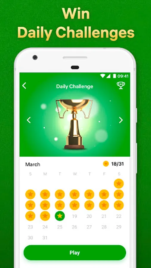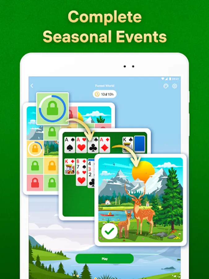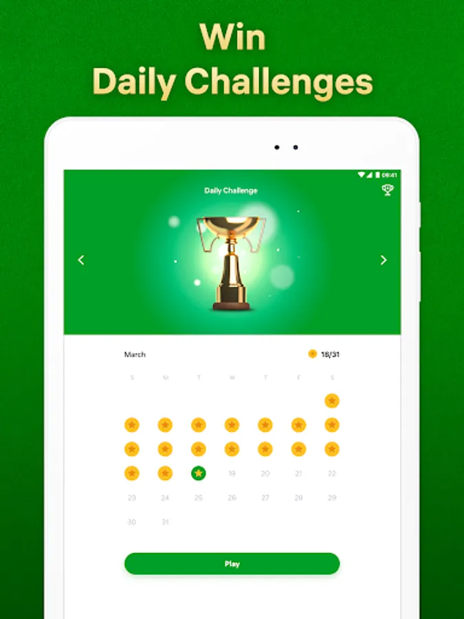 Complete challenges in classic solitaire games, earn golden crowns and collect a unique trophy every month. Enjoy patience card games!