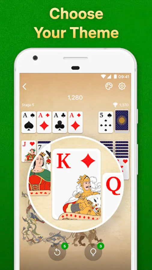 Use hints when you’re stuck in a classic solitaire game. Tap undo when you think you’ve made a mistake. Become a real solitaire pro!
