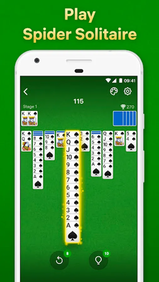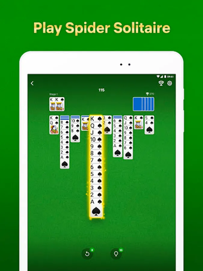 Made a wrong move or unsure what to do in a classic spider solitaire game? Smart Hints and Undos will have you covered!