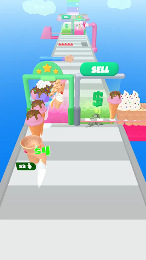 Challenge yourself in this tricky, but mouth-watering runner! Collect sugar cones, fill them with ice cream, sprinkles, fruits. Upgrade them, sell as much as you can. Be careful though, collect too much and you may lose control hit different obstacles, and lose your cones.