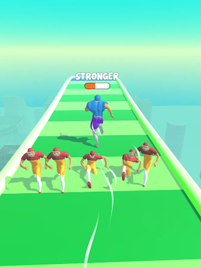 American football is a rough sport, you need strength, and agility! Collect footballs to get stronger and knockdown the defending players, and collect lightning to blitz through the opponents defense line, and dodge their players. Be careful though, if you get caught by too many opponents, you might lose the game.