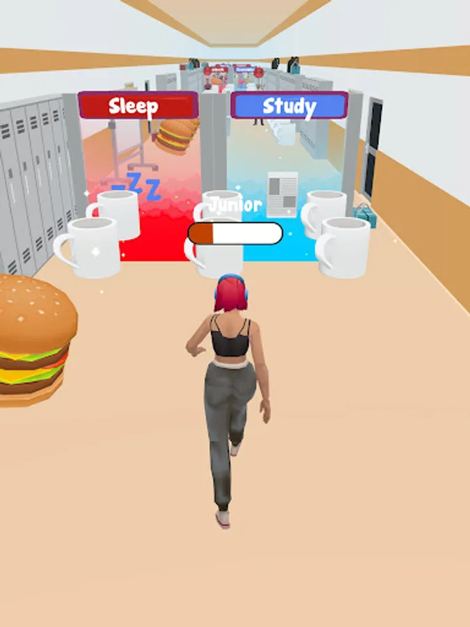 Dodge bad influences, and collect items that's going to improve your grades. Finish this runner as the most influential professor in the academy, an average student, or a drop out fry cook.