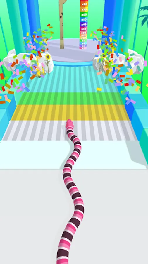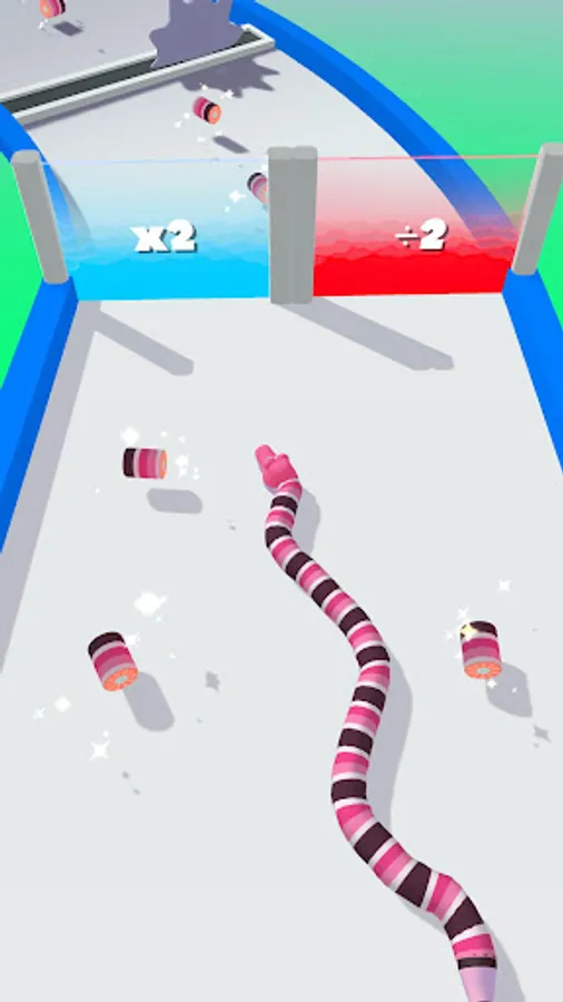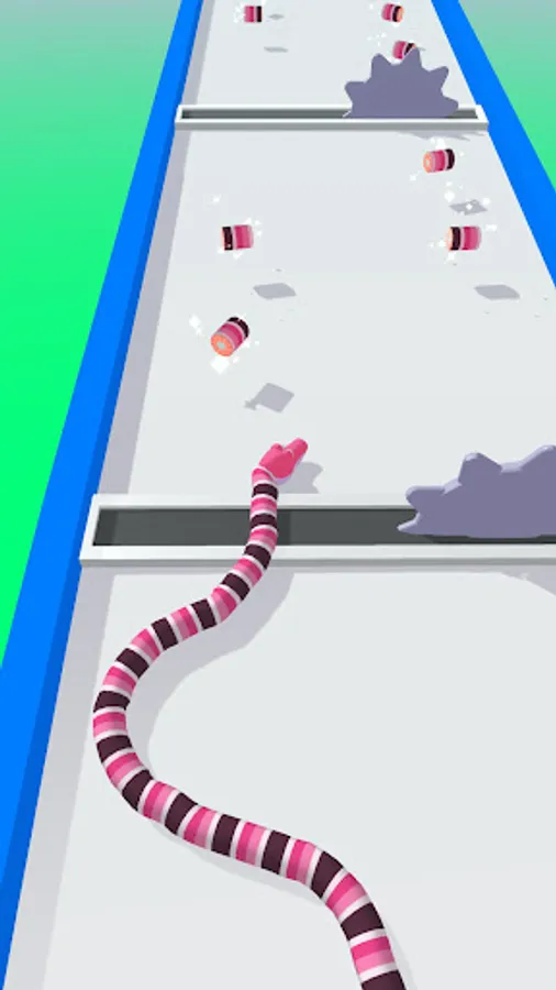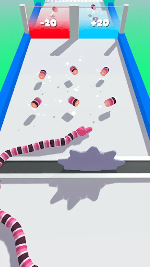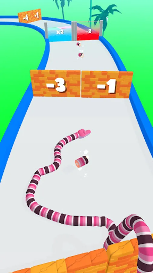 Slither around and collect tails to get longer. Make it through taller barricades, climb higher, and be the longest snake ever. Be careful there are blades, flame traps, saws all over the platform, try to not get cut, and lose your tail.