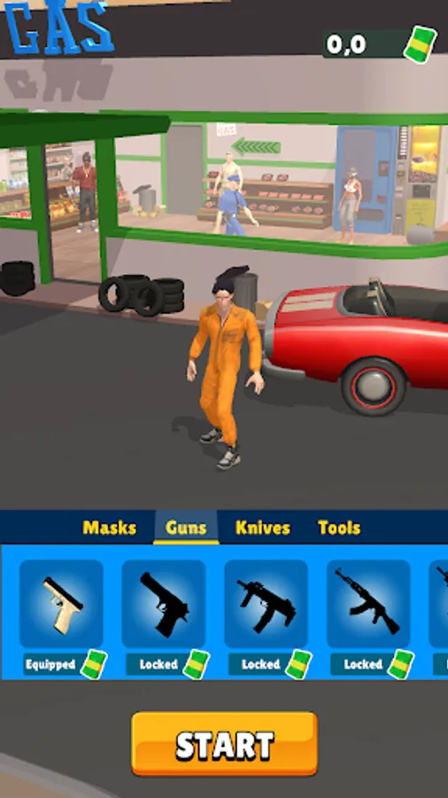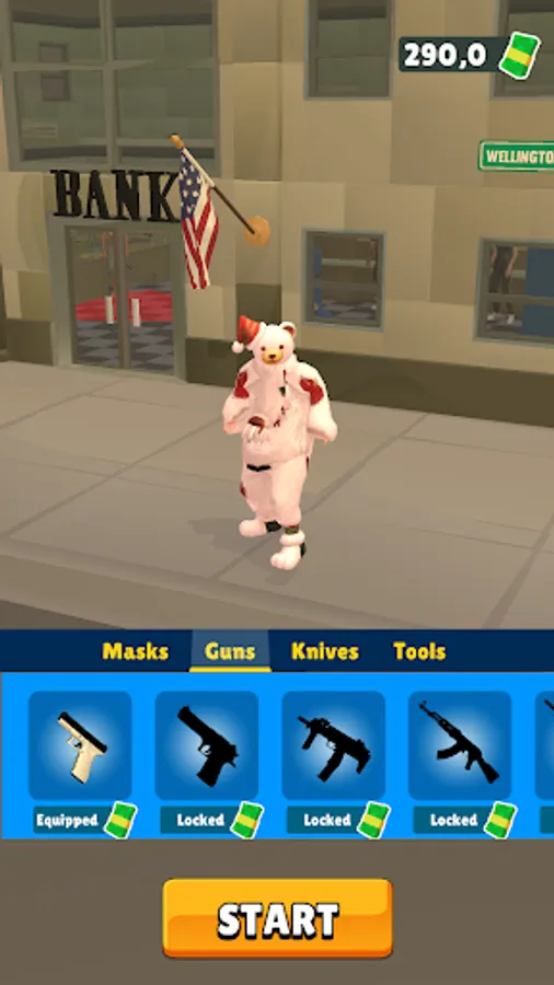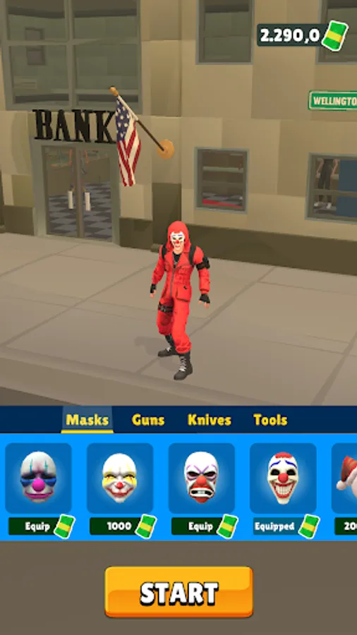 Buy new masks, guns and more items to avoid cops and security and steal more.