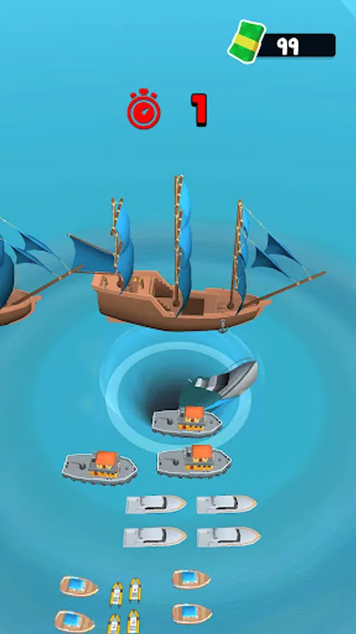 Control your whirlpool and suck in ships to become more powerful. Fight with sea monsters!
