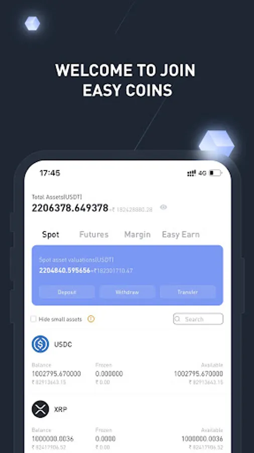 EasyCoins is an efficient crypto exchange app for buying, selling and trading crypto in India. You can check out market volumes, gainers and losers to make the right decisions. Users can buy and sell BTC, ETH, Cardano, Kucoin, and more than 300 other cryptocurrencies.