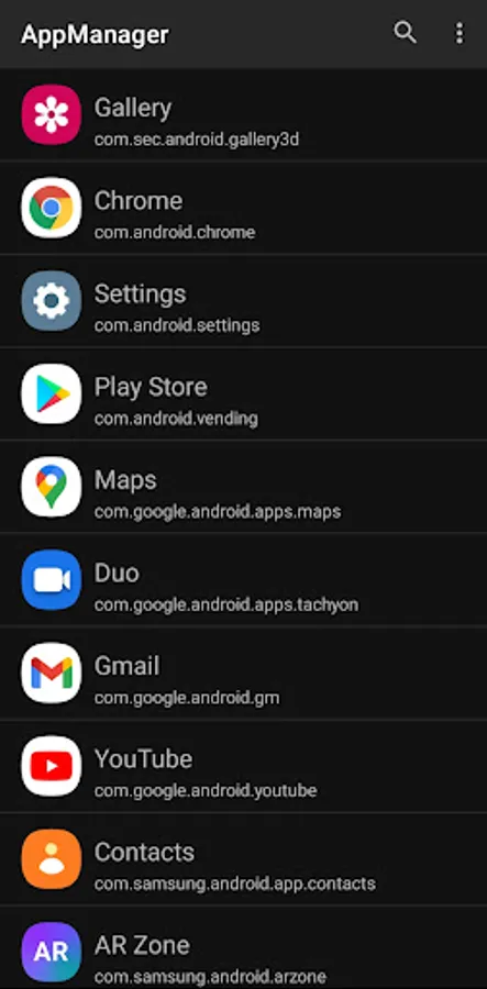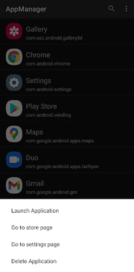 App Manager quickly lists all the installed applications on the user's device, displaying information about each application allowing the users to choose whether to launch, store page, setting, uninstall about each application.