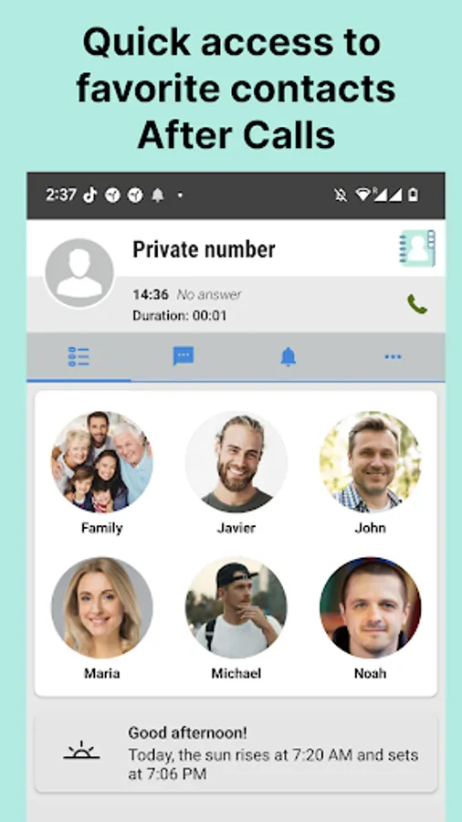 Fast call to your favorites. Easy access to your favorite contacts list after calls.