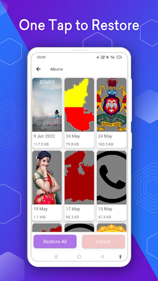 All Recovery You will get your old deleted photos and videos back in the gallery With this app, you will also be able to get your deleted files back.