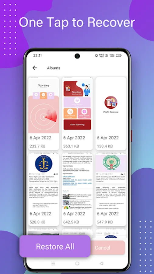 Photo Recovery App is a powerful and easy-to-use application. With it, you can easily find accidentally deleted images and audios and quickly restore them to your phone without the help of professionals.