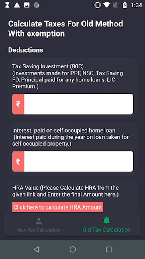 Tax Calculator Old & New Method (Regime) - Indian Income Tax Calculation, save tax by choosing any of the better tax calculation method suitable for you. if you are not aware what is the difference in the new and old tax calculation system then download our app and calculate tax on both new method and old regime and compare both tax calculations and decide which one is better for you. you can calculate the tax for the upcoming financial year and save the tax up to around 1 lakh rupees .