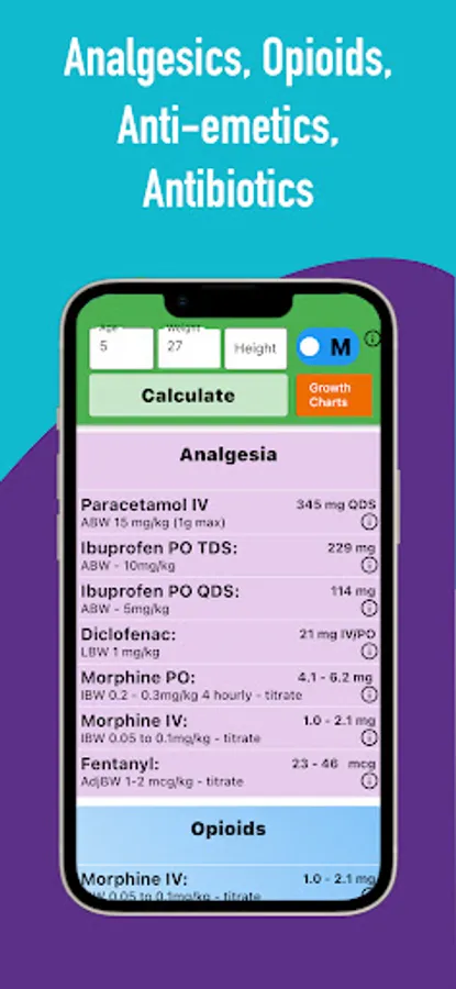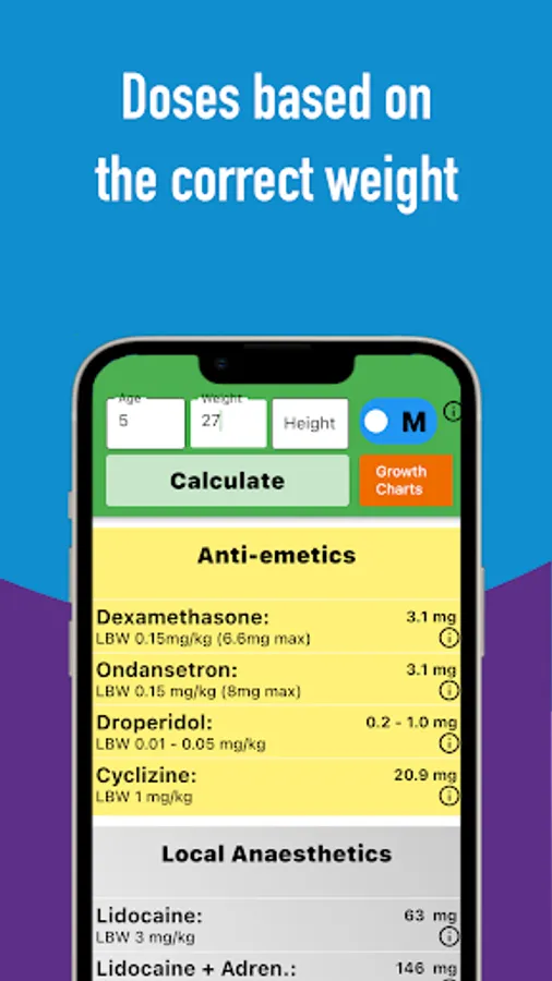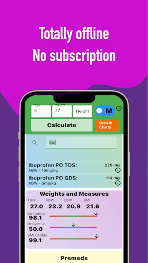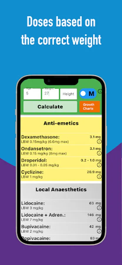 Paeds prescribing pro offers accurate dosing recommendations for all shapes and sizes. Anaesthetic drugs, emergency drugs, antibiotics, anti-emetics all dosed according to the correct weight. Don't know the weight or height? Don't worry.
