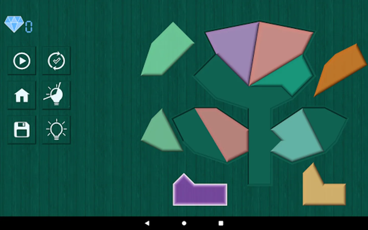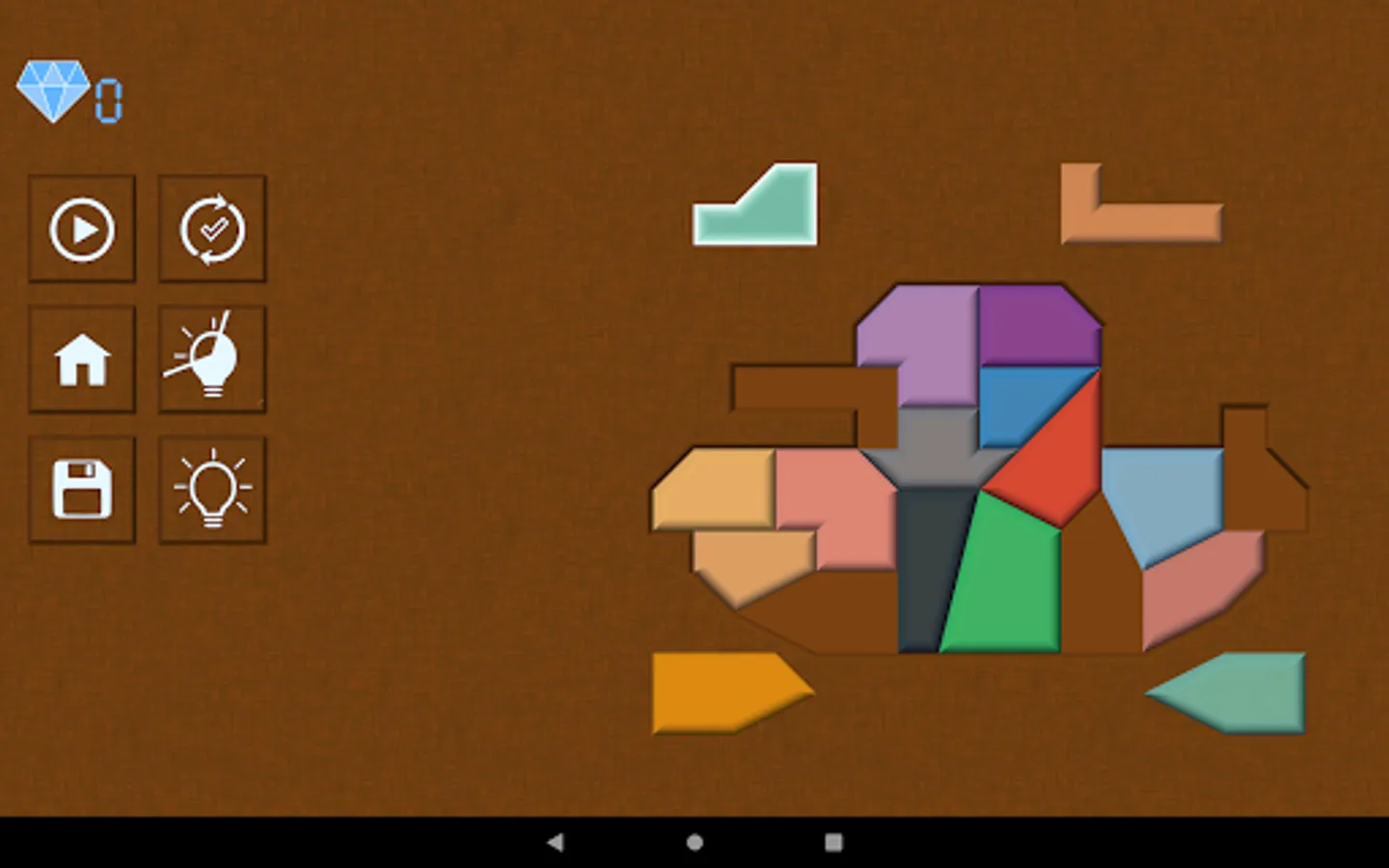 Rotate and move colorful polygons to make a variety of profiles like animals, food, vehicle, home appliance...