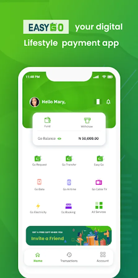 Send and receive money from any EasyGo wallet or account for FREE(no transactional fee), no maintenance fee. Wallet KYC is not necessarily mandatory to carry out transactions.