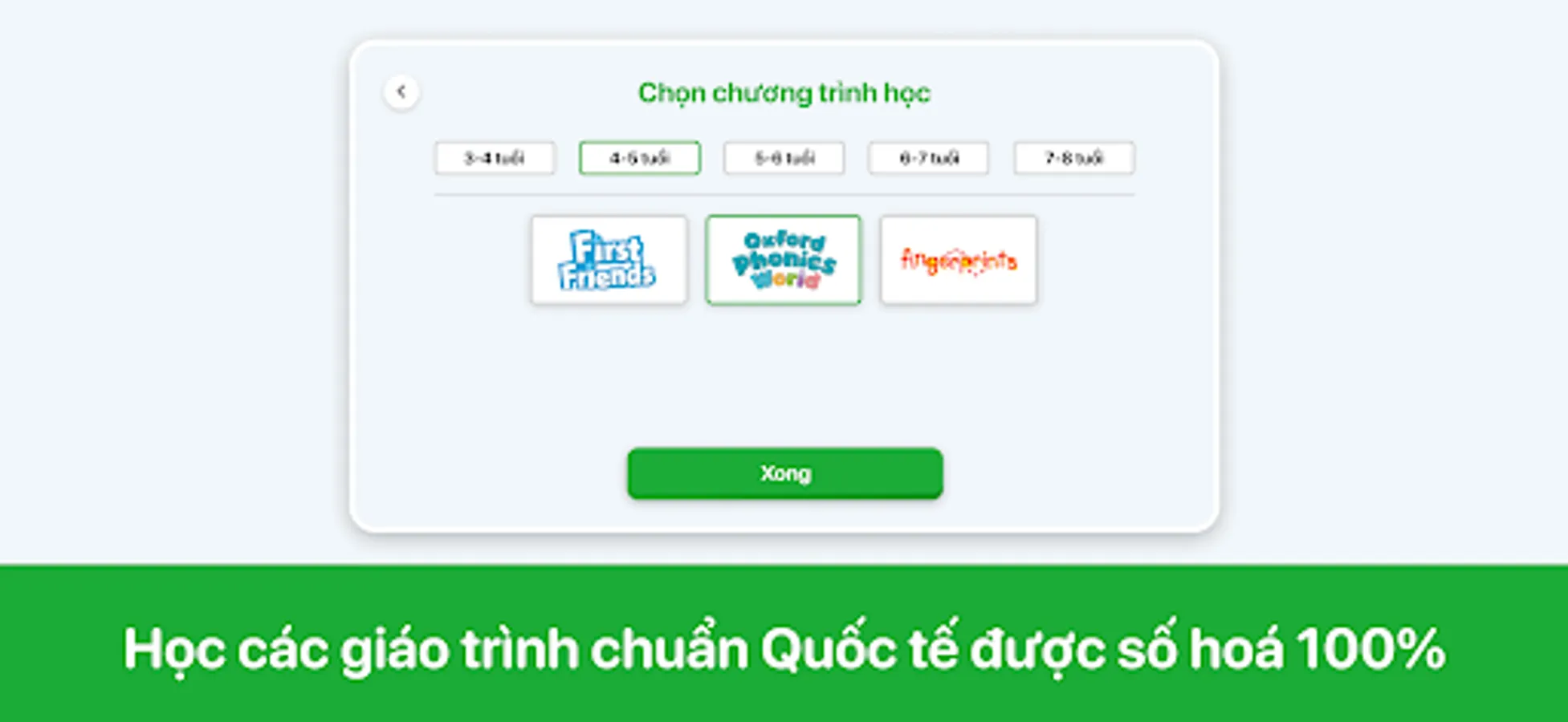 - From 3 to 9 years old, including famous international standard programs such as Oxford Phonics World, Oxford First Friend, Macmillan Fingerprint