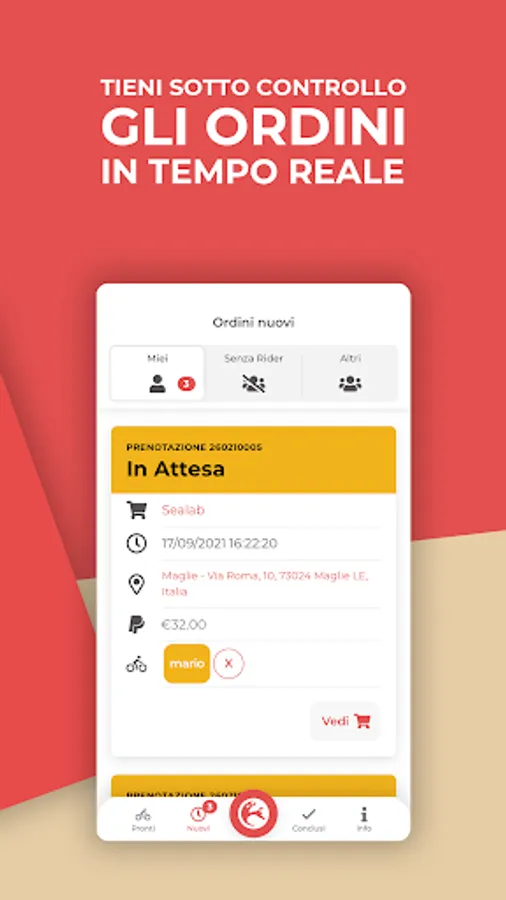 Through EasyGusto Rider you can check and manage the orders of the activities for which you carry out the delivery service.