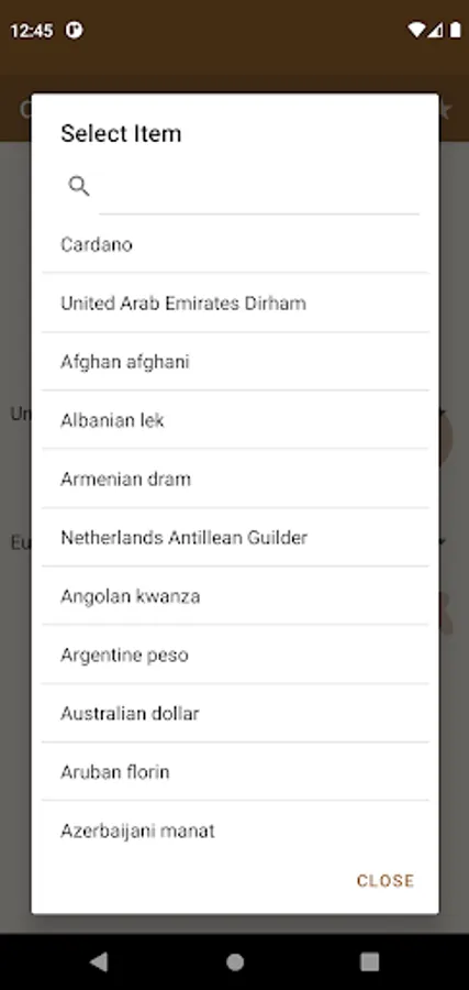 - Supports search to quickly find a currency