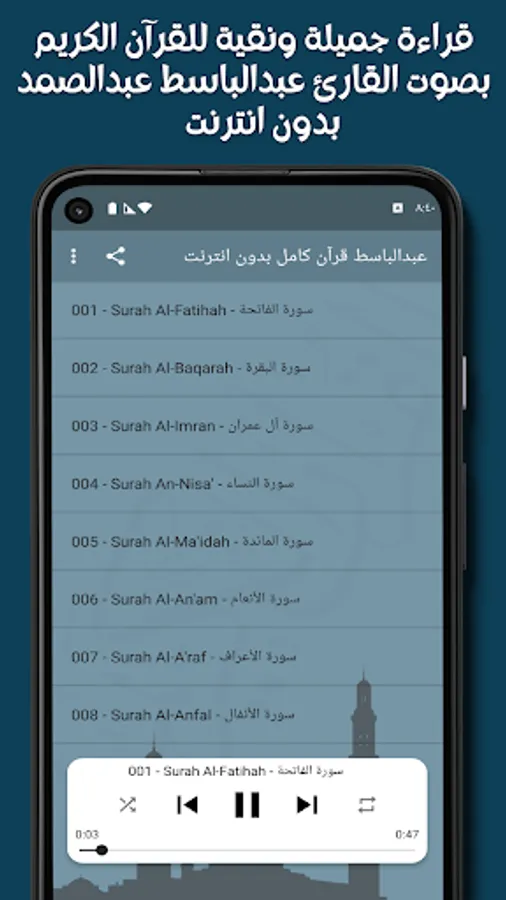 The application of the Noble Qur’an with the voice of Abdul Basit Abdul Samad allows you to hear all the surahs of the Noble Qur’an through your mobile phone or tablet with ease and ease through one program that contains all the surahs of the Noble Qur’an, and the Quran recitation application is characterized by the voice of Abdul Basit Abdul Samad by being free as it is Available on the store for Android phones. And you can download the application of the Noble Qur’an with the voice of Abdul Basit Abdul Samad with ease so that you can enjoy reciting the Noble Qur’an with the voice of Sheikh Abdul Basit Abdul Samad wherever you want.