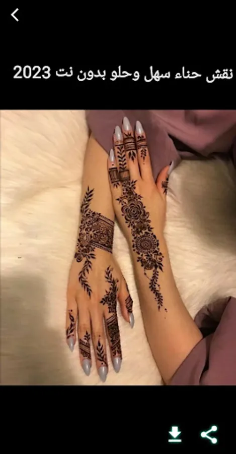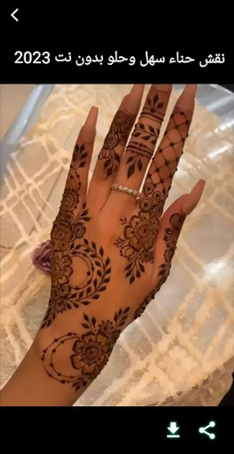 Henna inscription is considered one of the traditions inherited from the ancestors, and it is applied by women in the looks of Eid, weddings and occasions, especially in the Arab Gulf countries, with the aim of showing the woman’s femininity and her adherence to her heritage. The application will offer you pictures of distinctive and beautiful henna inscriptions,