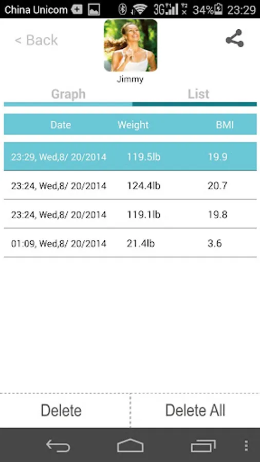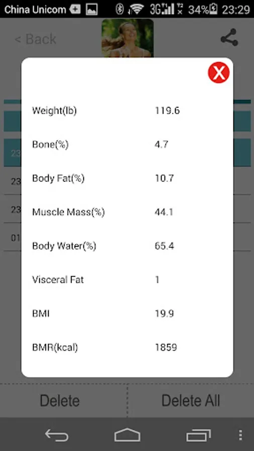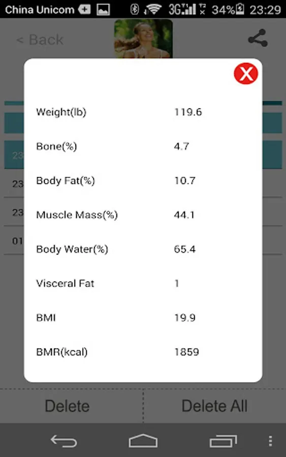 water, bone, muscle, BMI ,BMR and visceral fat. From the graphic displays; you can check