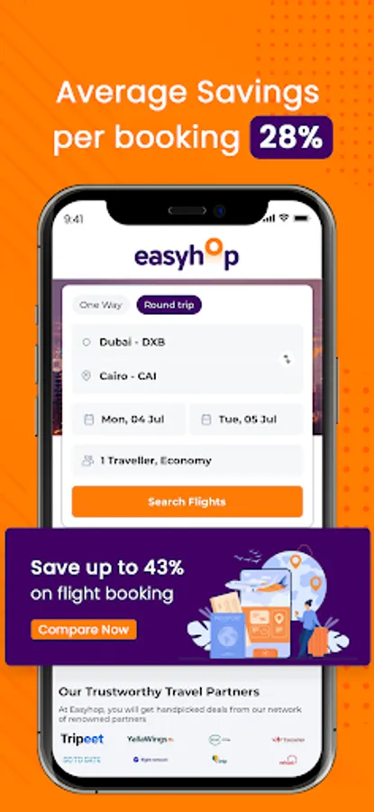 Download the Easyhop app and get set to grab the best flight booking deals. Our extensive partnership network with leading Online Travel Agencies (OTAs) help us bring you a galore of irresistible flight deals.