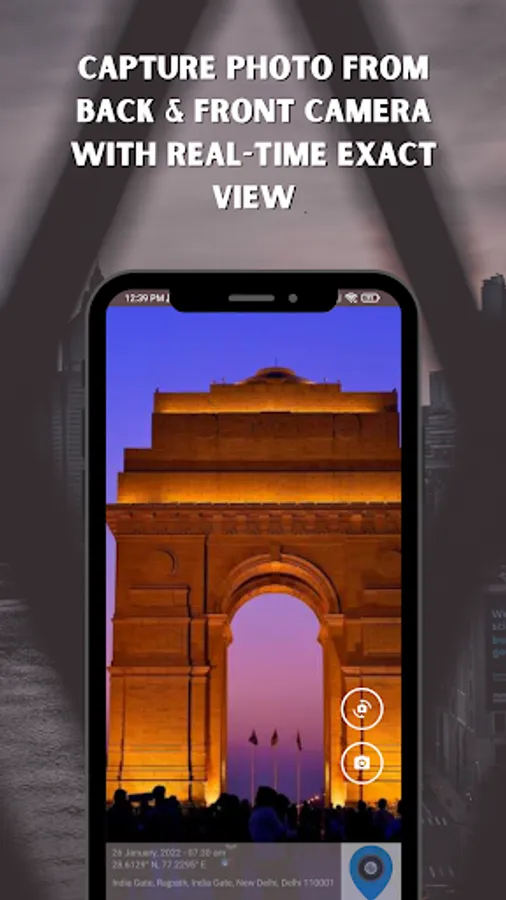 Camero is very simple Application which is allow you to embed GPS tag (Latitude & Longitude), Timestamp (Date & Time) and your company / organization or branding watermark on captured photo.