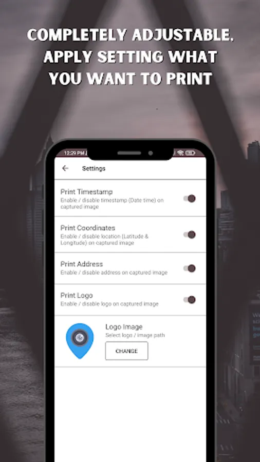 May be this is the one and only app which is allow you to 100% customization (i.e. Enable or disable Address, GPS Coordinates and even change watermark image).