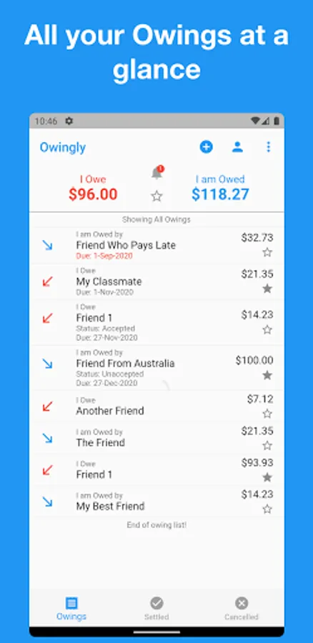 Owingly makes it easy to keep an eye on the owings which are due soon or have become overdue.