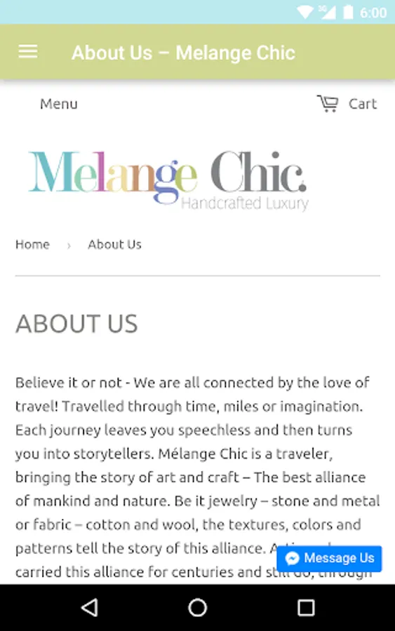 The Melange Chic official app brings you closer to our complete range of affordable luxury handcrafted items including silver jewellery with gold polish and gemstones, scarves, cashmere, Kashmiri shawls and home furnishings like quilt covers & cushions.