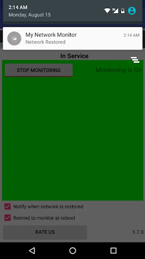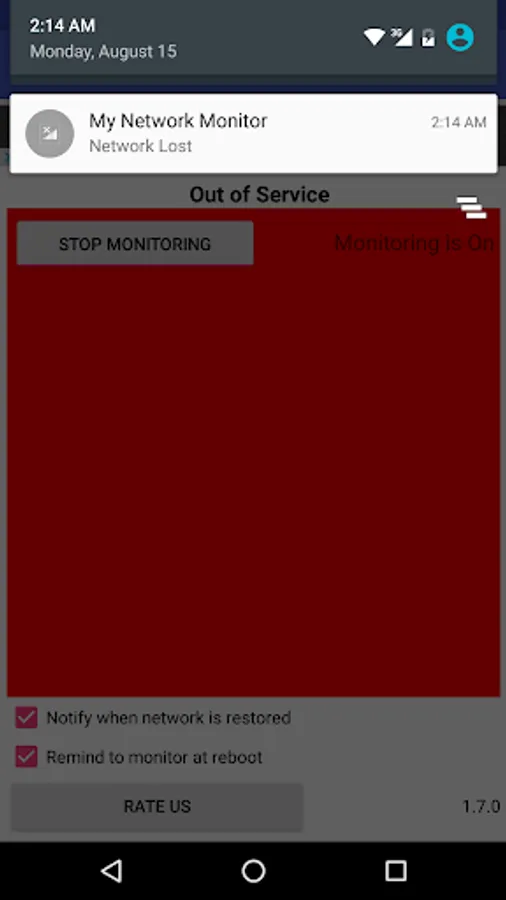 This small and simple utility will ensure that this doesn't happen again. It monitors your network connection (upon request) and notifies you as soon as you lose network connection.