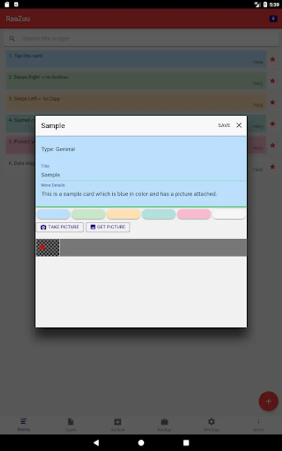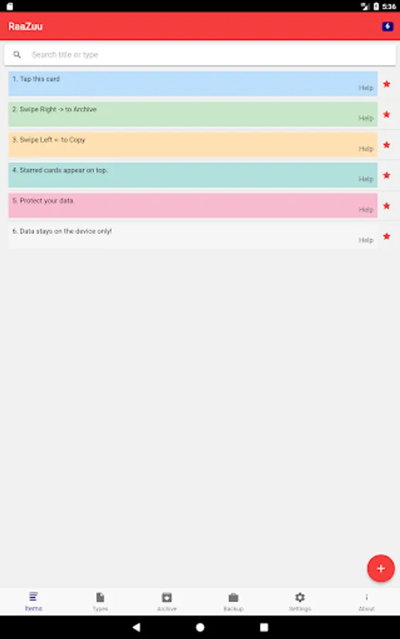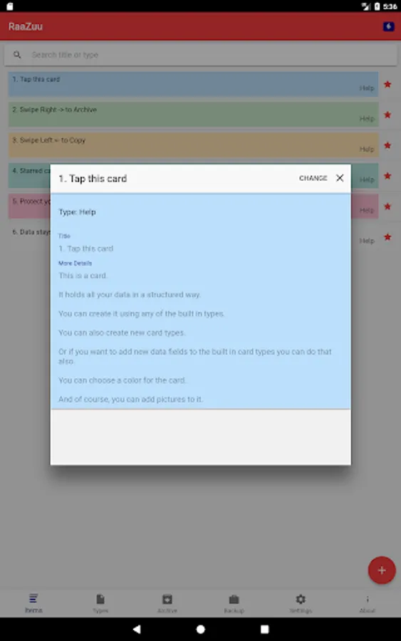 RaaZuu is a note taking application which helps you bring structure to your life. The notes are organized in cards, which are not just blobs of data but have a structure assigned to them based on the card type.