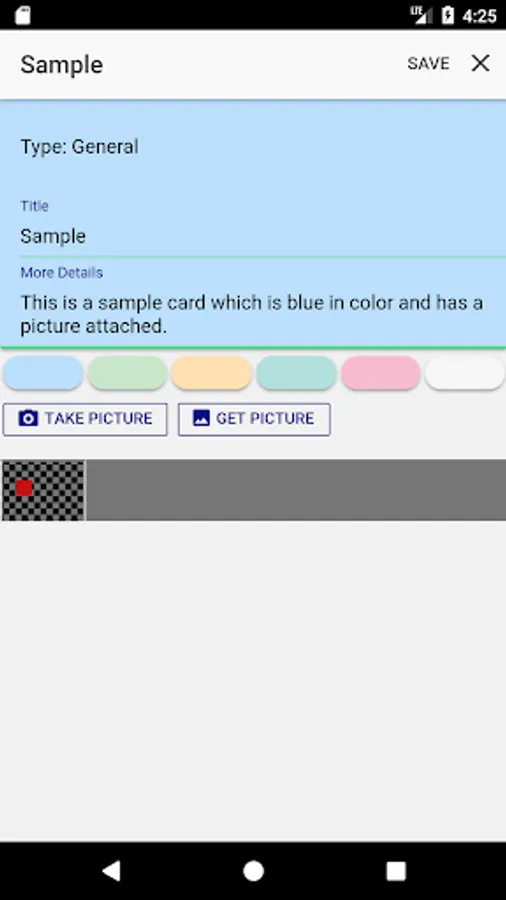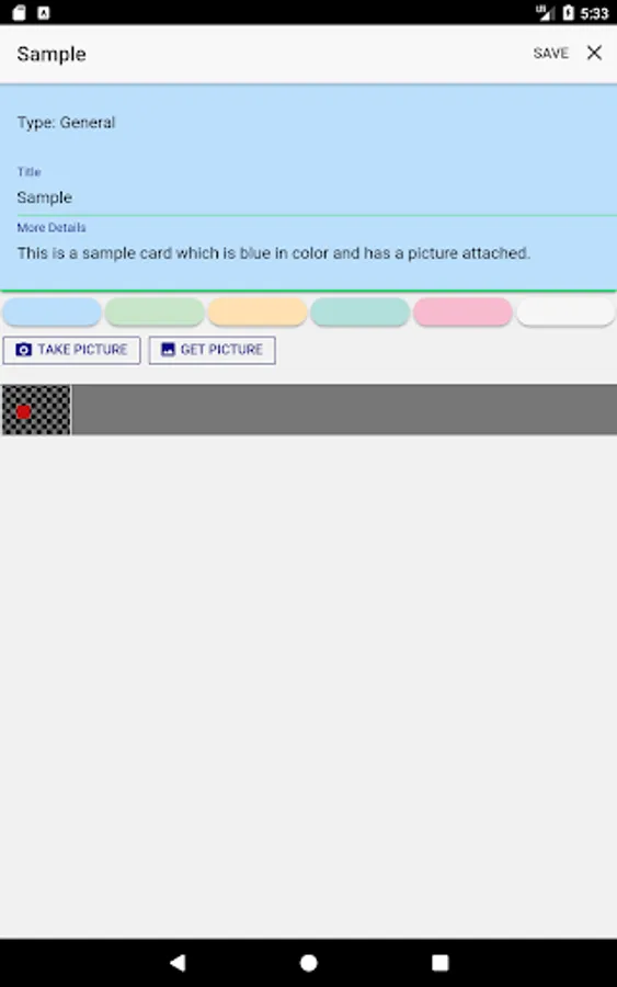 You can choose a color for the card and and of course, you can add pictures to it.