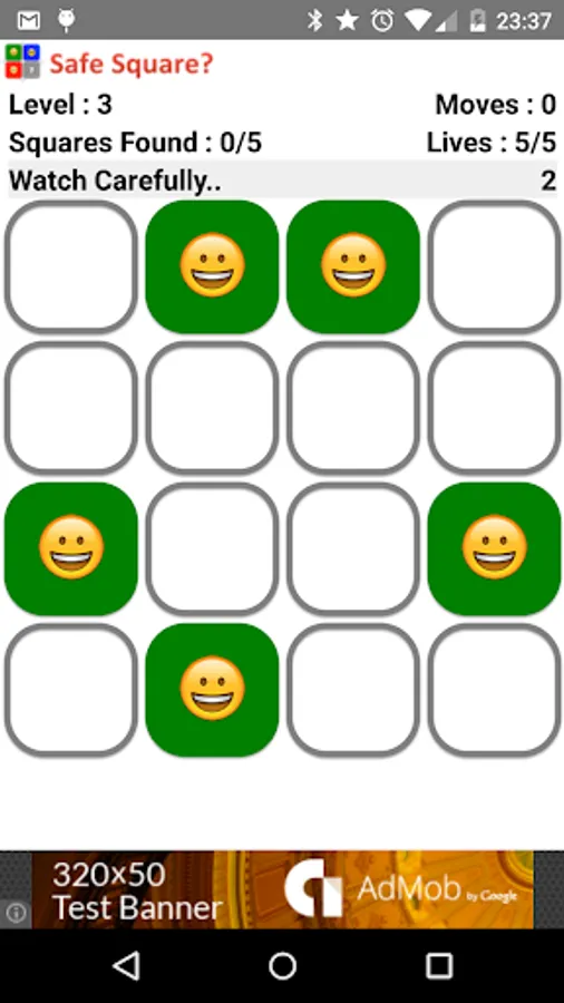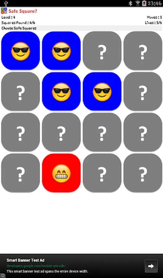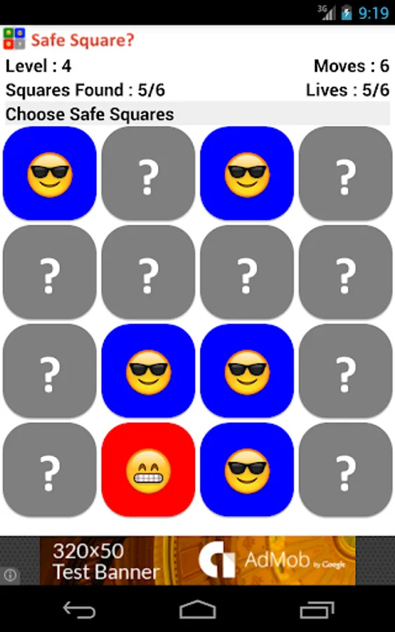3. Try to find the safe (green) squares. If your guess is right, the square turns blue. If your guess is wrong, the square turns red.