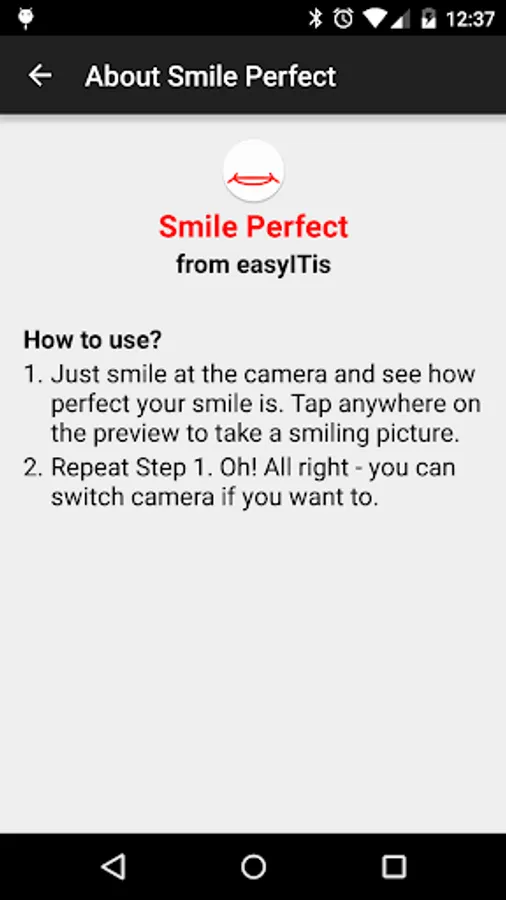 Step 1. Just smile at the camera and see how perfect your smile is - on a scale of 1 to 100. Tap anywhere on the preview to take a smiling picture and then swipe to see your pictures.