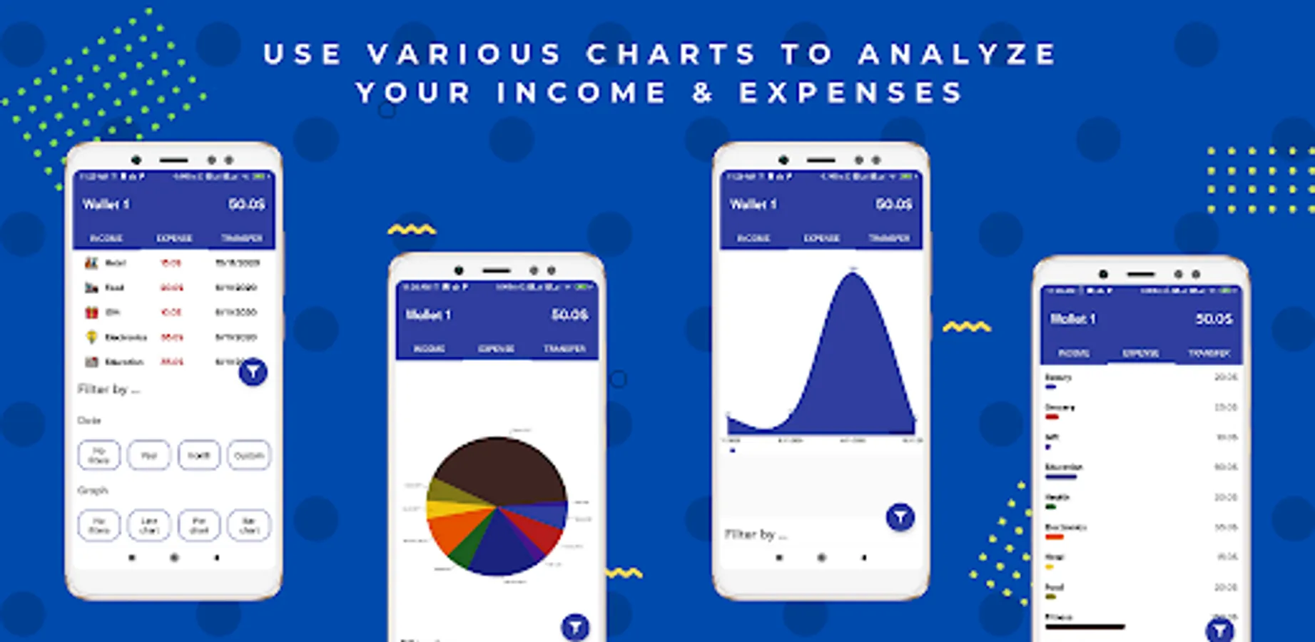 - Automatically generated charts which gives user a better picture of their income and expenses with using different filters.