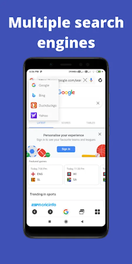 - Multiple search engines : User can select any search engine from Google, Yahoo, Bing, Duck duck go as per their convenience.