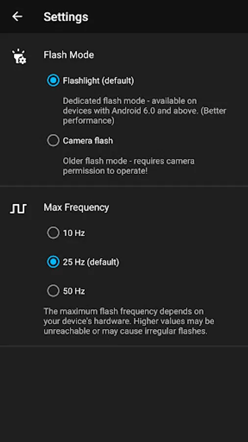 You can adjust the frequency of flashes in the range of 0.25 - 25 Hz.