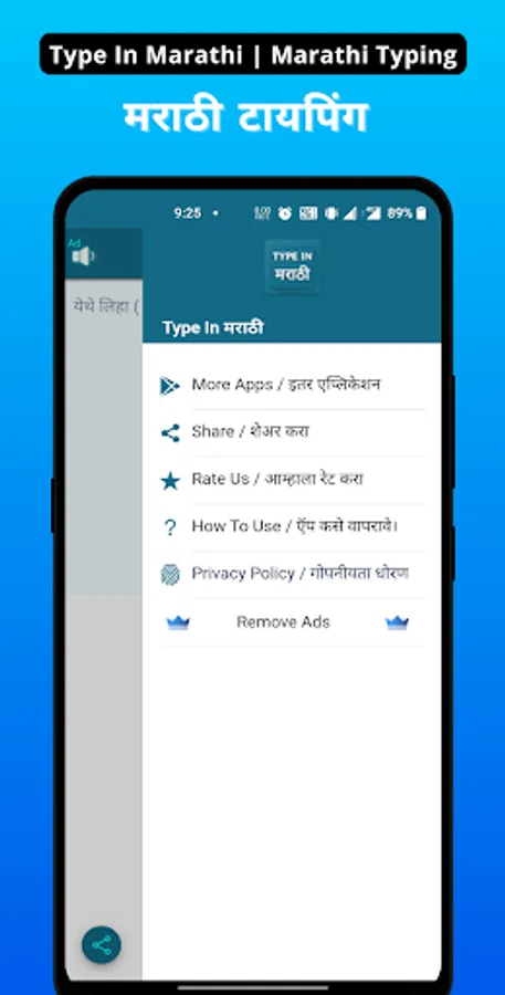 - No keyboard or any technical configuration required. Simple type in english like words and app will convert it to marathi.