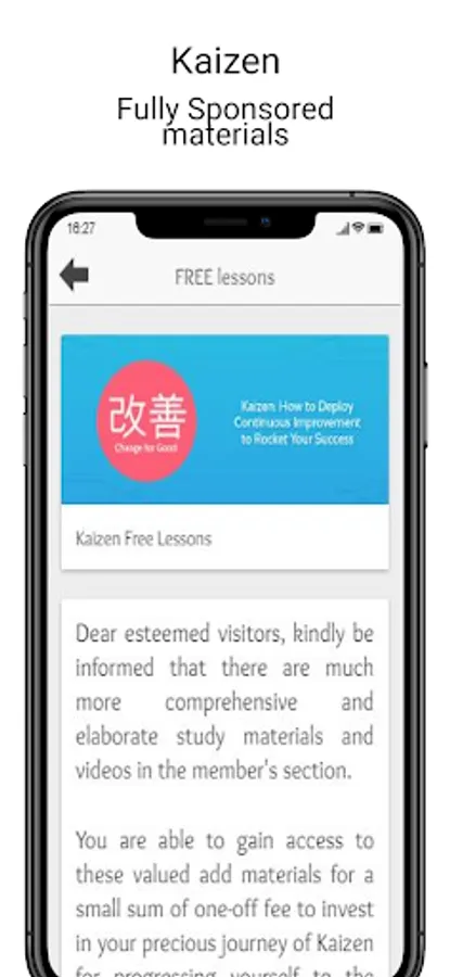 Kaizen: Personal improvement, self-motivated application is a highly versatile and conducive personal improvement portal enabling you to study on the go, spare moments turned into valuable moments.