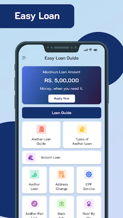 Easy Loan : Get In 2 Min Guide is available instantly. Money is transferred from an online account to an account. The loan amount is given within 5 minutes. Easy verification. Hand-to-hand loan amount disbursal.