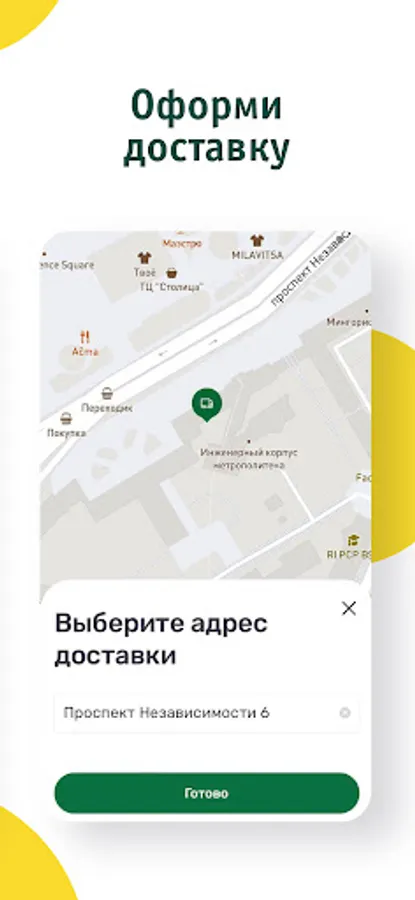 The application allows you to order the delivery of healthy food or buy from the Easy Soup self-service refrigerator. For self-service, you need to scan the barcode from the packaging and pay by card.